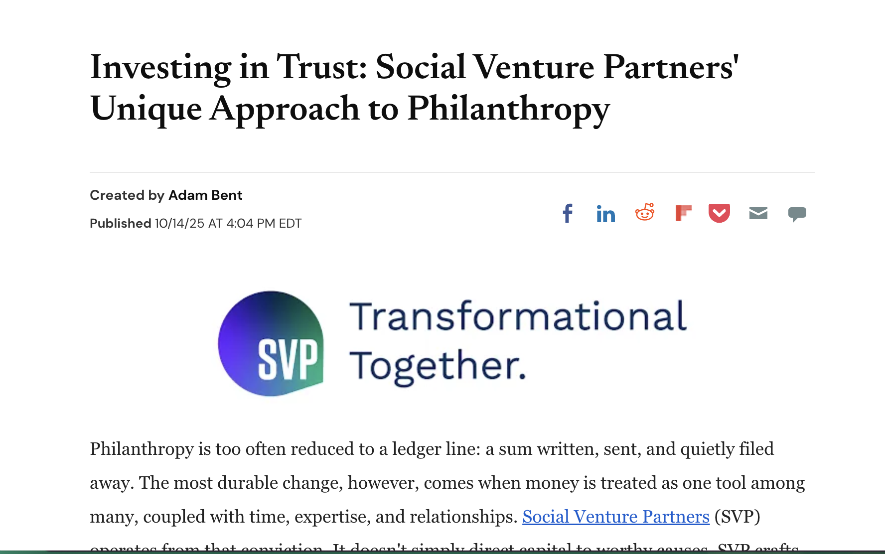 Investing in Trust: Social Venture Partners’ Unique Approach to Philanthropy